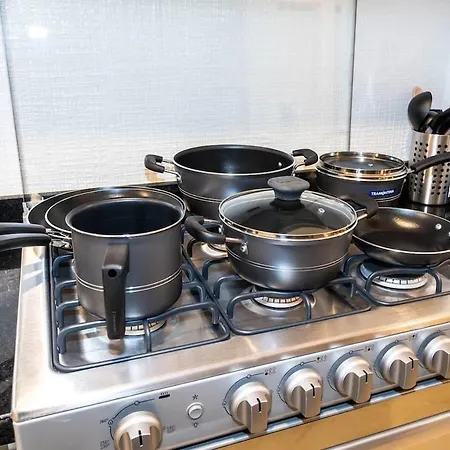 Yes, this apartment is furnished with a mini-kitchen and offers an oven as well.